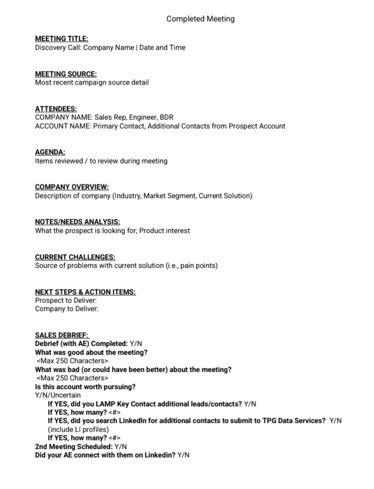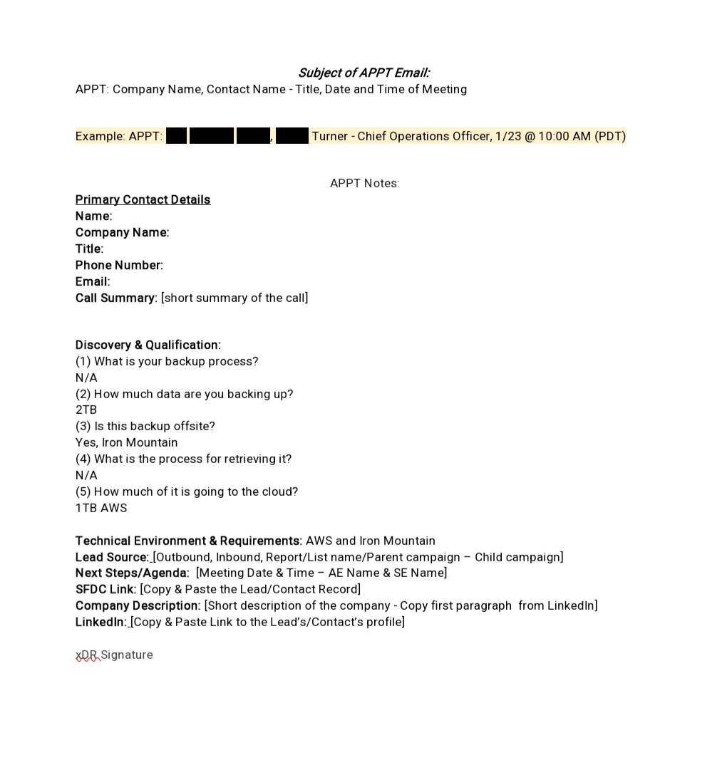 - Appointment Notes & Completed Meeting Forms: Each meeting was documented in Salesforce using structured forms and detailed appointment notes, providing all essential info for seamless AE hand-off and enabling clear next steps for management tracking and team accountability.